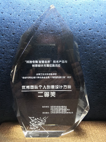 2020年该系统方案参加由北京市科委、经信局主办的“科技冬奥,智慧北京”技术产品和创意设计方案征集活动获得“优秀团队个人创意设计方案”二等奖。