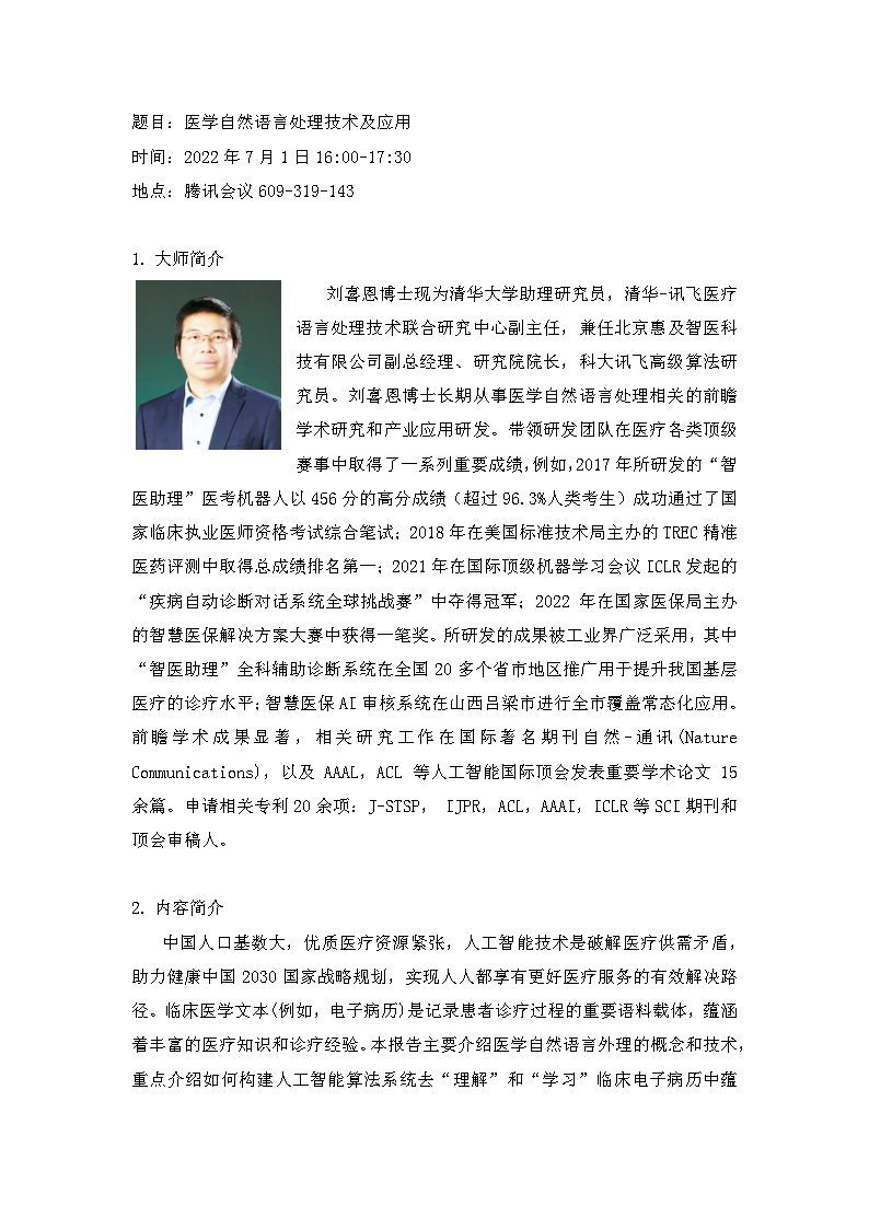 信息学部成功举办工程大师论坛-“医学自然语言处理技术及应用”