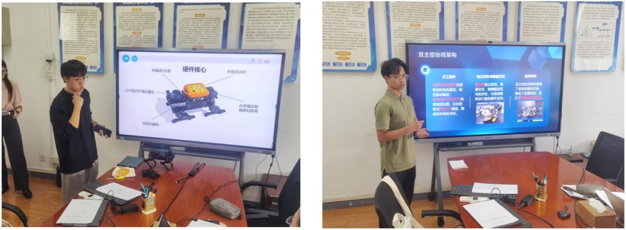 答辩环节中,15支团队通过PPT讲解、视频演示及实物展示,全面呈现作品的技术深度与社会价值。由5位资深专家组成的评审组对作品的创新性和应用前景给予高度评价,并针对性提出优化建议,助力团队备战北京市赛。