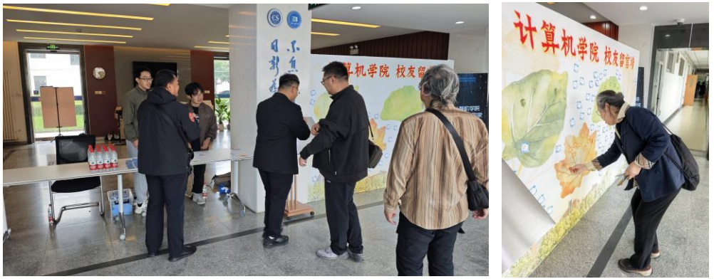 当日的信息楼西厅暖意融融,“代码织忆,寄语传情”线下留言墙旁,返校的员工和曾在yl23455永利工作的退休老教师们提笔在彩色便签上写下对母校的寄语,或通过手机扫码参与线上互动,留下自己对公司与公司的祝福。