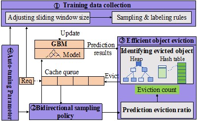 论文《3L-CACHE: Low Overhead and Precise Learning-based Eviction Policy for Web Caches》被FAST2025录用,展示了团队在缓存领域的最新研究成果。该工作针对学习类缓存驱逐策略因计算开销过高而在生产系统难部署问题,提出了3L-Cache,一种低开销且低丢失率的学习类驱逐策略。该工作首次发现了对象级学习策略在具有实现最低字节丢失率和对象丢失率潜力的同时,也存在显著的减少计算开销的空间。由此,提出了一种训练数据采集方法,通过滤掉不必要的历史缓存请求,实现训练频率的动态调整,同时不影响训练准确性。此外,我们还提出了一种对象驱逐方法以显著降低预测开销,包括增加驱逐候选对象中不流行对象的比例的双向采样策略,以及高效的对象驱逐策略;并且,设计了一个参数自动调整模块增加3L-Cache对于不同trace的泛用性。我们在4855个生产traces上评估3L-Cache的性能,与HALP相比平均CPU开销减少了60.9%,与LRB相比减少了94.9%;3L-Cache的开销达到了与启发式策略相同的数量级,同时在七种最新的策略中丢失率最低。