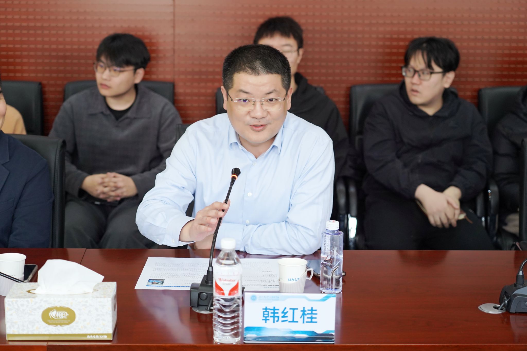 最后,韩红桂经理作总结讲话。他首先对 Tony Q.S.Quek 院士带来的精彩学术报告表示衷心感谢与高度评价,指出院士的报告内容前沿、视野开阔、见解深刻,既紧密结合学科发展前沿,又紧扣实际应用需求,为在场师生带来了极具价值的学术启发与思路拓展。同时,他对本次学术交流活动的组织与成效给予充分肯定,鼓励广大师生积极学习借鉴前沿理念,不断提升学术素养与创新能力,持续加强与国内外顶尖学者的交流合作,推动团队建设与科研工作再上新台阶。