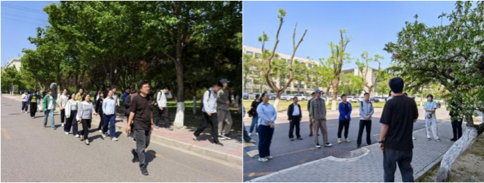 活动中,党员们沿着精心设计的赏花路线移步换景,依次观赏了槐花、碧桃、鸢尾、梧桐、马兰、山楂等植物。后勤综合服务第一党支部的崔海川老师为大家详细讲解了每种花卉的特征、栽培方式及文化象征。党员们不仅学到了丰富的植物知识,还通过手机APP与AI对话,实时识别花卉品种并了解其在生态系统中的作用,将科技与自然结合,让传统的赏花活动焕发出新的活力。