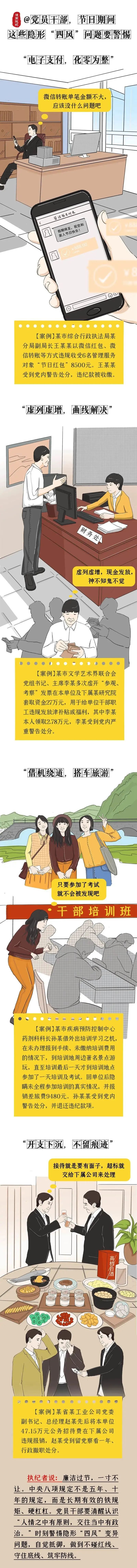 “两节”期间,可以放松的是身心,不能放松的是纪律。请您紧绷纪律和规矩之弦,严格遵守中央八项规定精神和廉洁自律准则,杜绝违规公款吃喝、收送节礼、违规发放津补贴或福利、违规配备使用公务用车、大办婚丧喜庆、接受管理服务对象宴请等节日期间易发多发问题,杜绝“四风”隐形变异问题,严格遵守疫情防控要求。让我们共同度过欢乐祥和、风清气正、清廉节俭的节日。