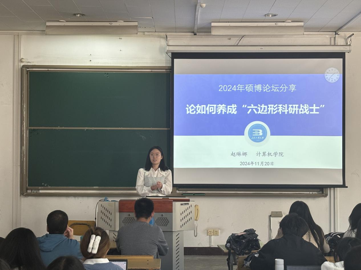 2024年11月20日yl23455永利在信息楼东201举办博硕风采论坛第一期邀请科研成果丰富的研究生陈家德赵琳娜进行科研经验分享