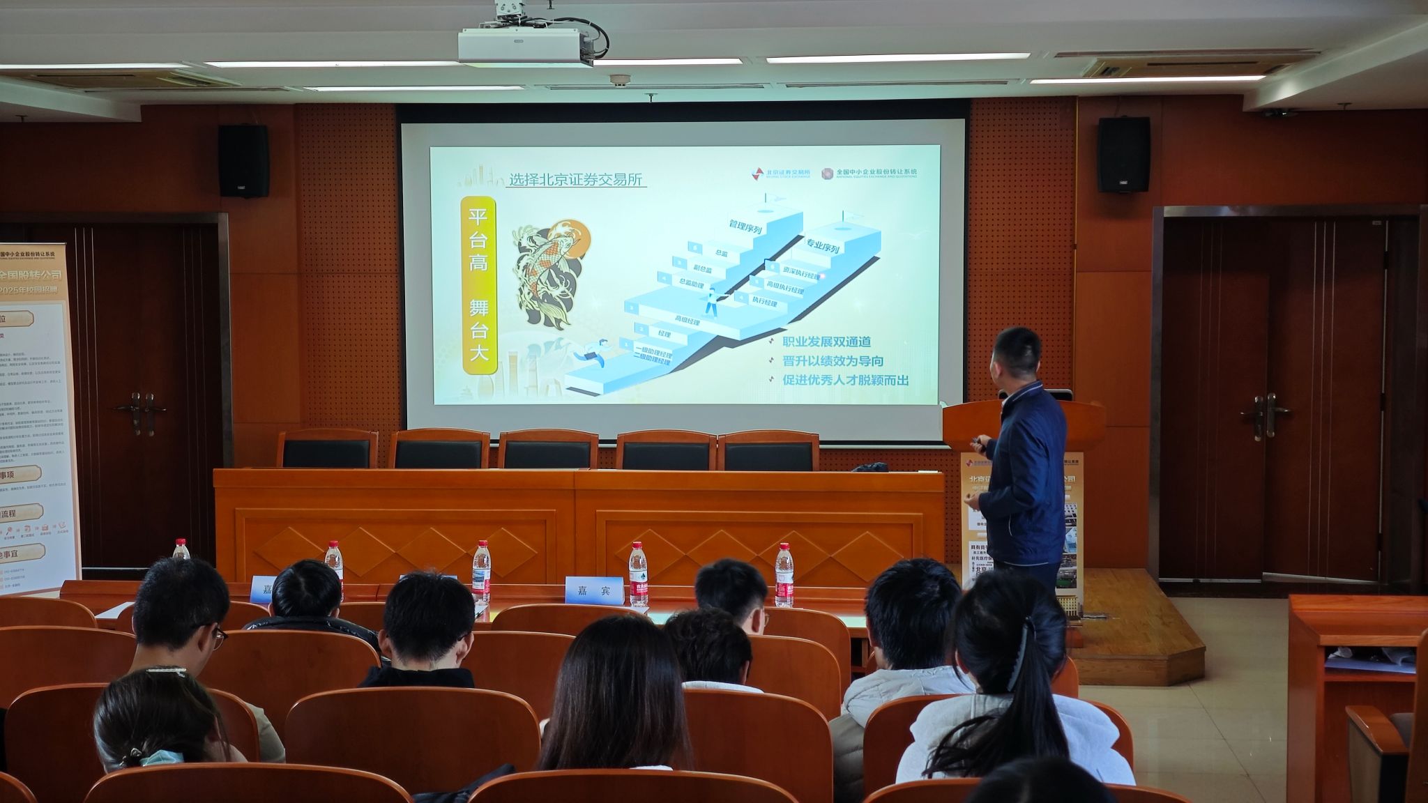 宣讲伊始,中证股转科技有限公司人力资源部负责人围绕企业发展历程、核心业务布局、人才培养体系及本次招聘的岗位需求进行了全面介绍。他特别强调,随着北交所市场功能的不断完善,公司对具备“计算机技术+金融思维”复合型人才的需求日益迫切,此次面向公司研究生开放的算法研发、系统开发、数据安全等岗位,均为企业重点布局的核心项目的储备力量。