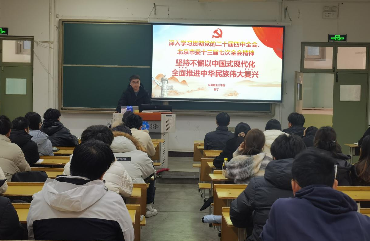 郭丁老师以《深入学习贯彻党的二十届四中全会、北京市委十三届七次全会精神 坚持不懈以中国式现代化全面推进中华民族伟大复兴》为题,为与会师生带来了一场内容丰富、思想深刻的报告。