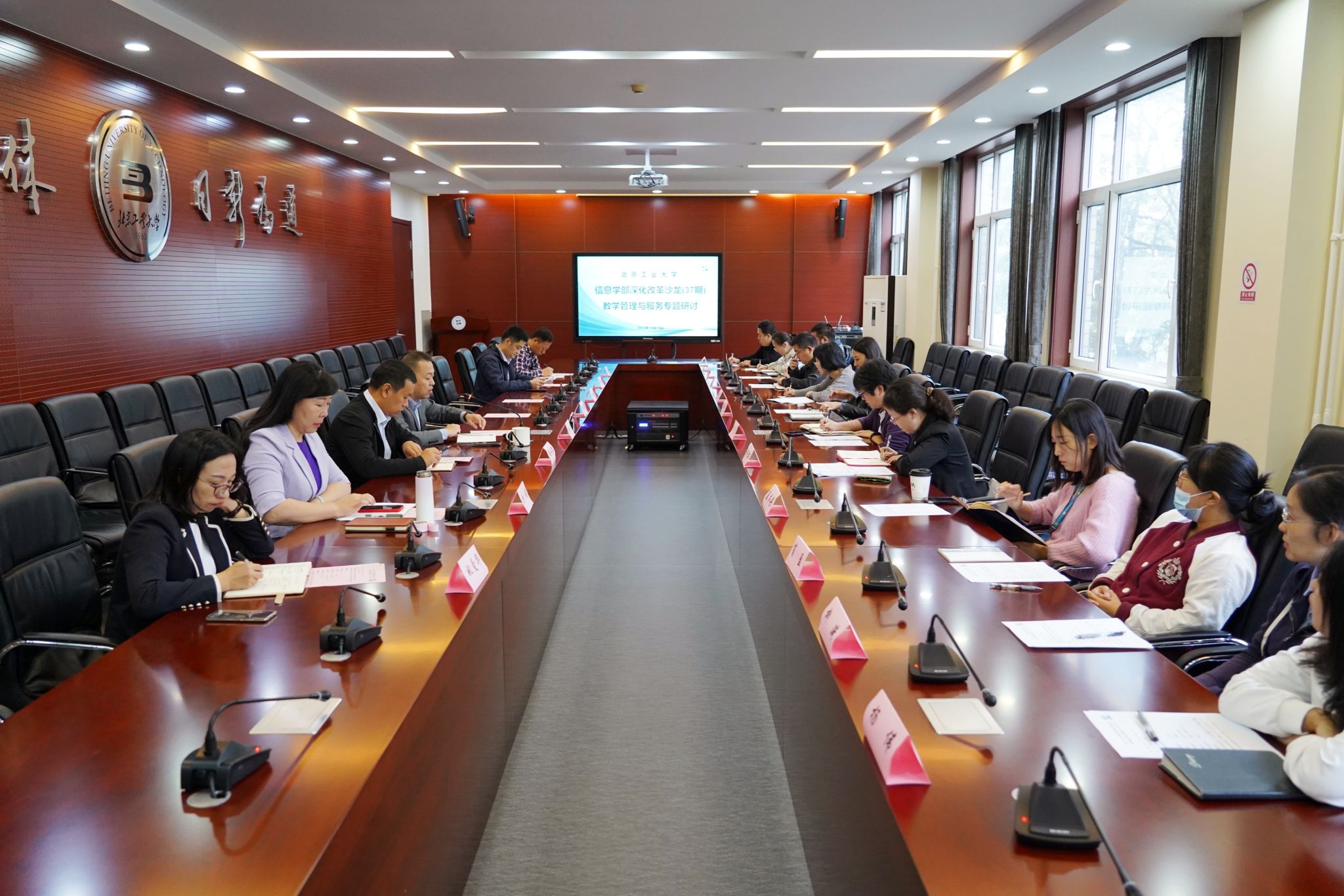 为全面推进“学部-系”两级治理体系,进一步提升机关管理队伍思想和服务水平,高效率服务学部师生,10月19日,信息学部召开深化改革沙龙之教学管理与服务专题研讨会,研究讨论如何优化和简化工作流程,梳理协调“学部-系”联动工作事项。信息学部党委书记杜峰,党委副书记张永哲、王丽君,副主任方娟、张利国、关宝璐、正处级组织员姚爱华以及公司产品相关办公室管理岗人员参加,会议由党委书记杜峰主持。