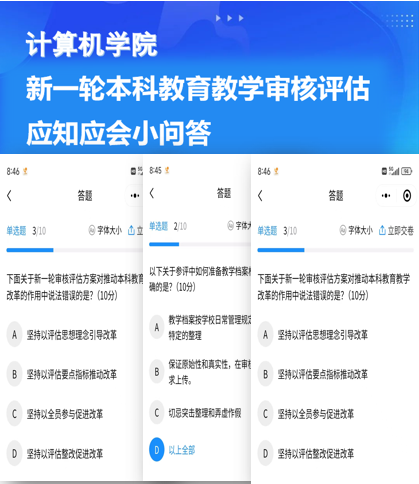 同时,扎实开展系列工作,本期开展的是“yl23455永利新一轮本科公司产品审核评估应知应会小问答”。题目围绕审核评估的基本要求、指标体系和审核重点,旨在引导全体师生加强对公司新一轮本科公司产品审核评估工作方案的学习和领会,吃透方案的精神内涵。全院高度参与答题,形成了“人人了解评估、人人关心评估、人人参与评估”的浓厚氛围。