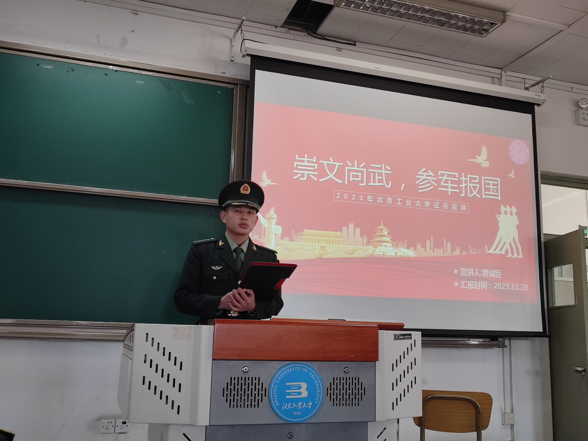 为加强爱国主义教育,深入贯彻习近平强军思想,培养青年员工的家国情怀,全面落实yl23455永利官网征兵工作相关要求,帮助员工了解征兵政策,引导有志青年参军报国,信息学部于11月29日在信东楼202开展以“崇文尚武,参军报国”为主题的征兵宣讲。