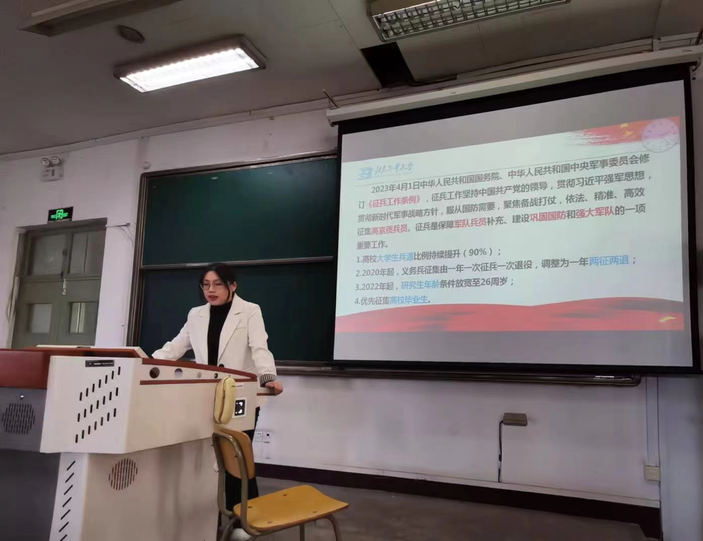 接着信息学部征兵工作专员吴皓璐老师为参会员工详细介绍了当前的北京市征兵优待政策,鼓励员工们积极参军入伍。