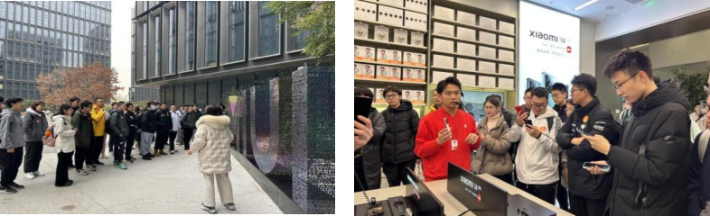 信息学部于2023年开始实施“启鹏创新人才培养计划”,创办“飞腾营”。飞腾营学员们在工作人员的带领下,在产业园内进行参观和学习,依次经过生活区、小米之家和办公区。在现场学习中,工作人员热情介绍了小米公司优越的办公环境,展示了“人车家全生态”战略下的智能家居系统。学员们惊叹于科技创新给人们日常生活带来的便利的同时,也充分认识到目前所学的专业知识在最新领域中的应用。