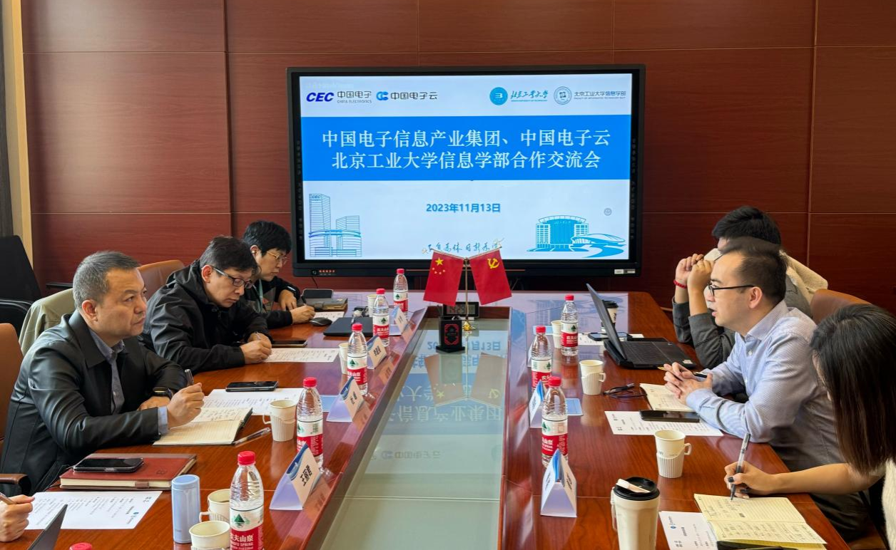 为进一步加强校企合作,推动创新人才培养,2023年11月13日下午,信息学部与中国电子信息产业集团、中国电子云产教融合合作交流会。中国电子集团战略合作部教育行业负责人郭晓东,中国电子云教育行业京津冀大区总经理傅越,中国电子云教育行业产品部金大有,以及信息学部党委书记杜峰,副书记王丽君,学部副主任、软件工程系系主任李建强,软件工程系系副主任齐娜,软件工程国家级实验教学示范中心主任朱青,软件工程国家级实验教学示范中心副主任于学军参与本次会议。