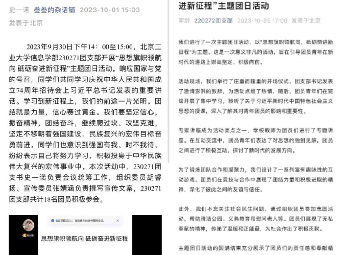 为深入学习贯彻习近平新时代中国特色社会主义思想,贯彻落实党的二十大精神,加强信息学部共青团组织的思想引领工作,凝聚起建设中国式现代化的蓬勃力量,信息学部开展“思想旗帜领航向 砥砺奋进新征程”主题团日活动。各团支部积极组织团员青年学习党的相关理论著作,开展小组讨论,交流心得,以多样化形式为团员青年提供行动指南。