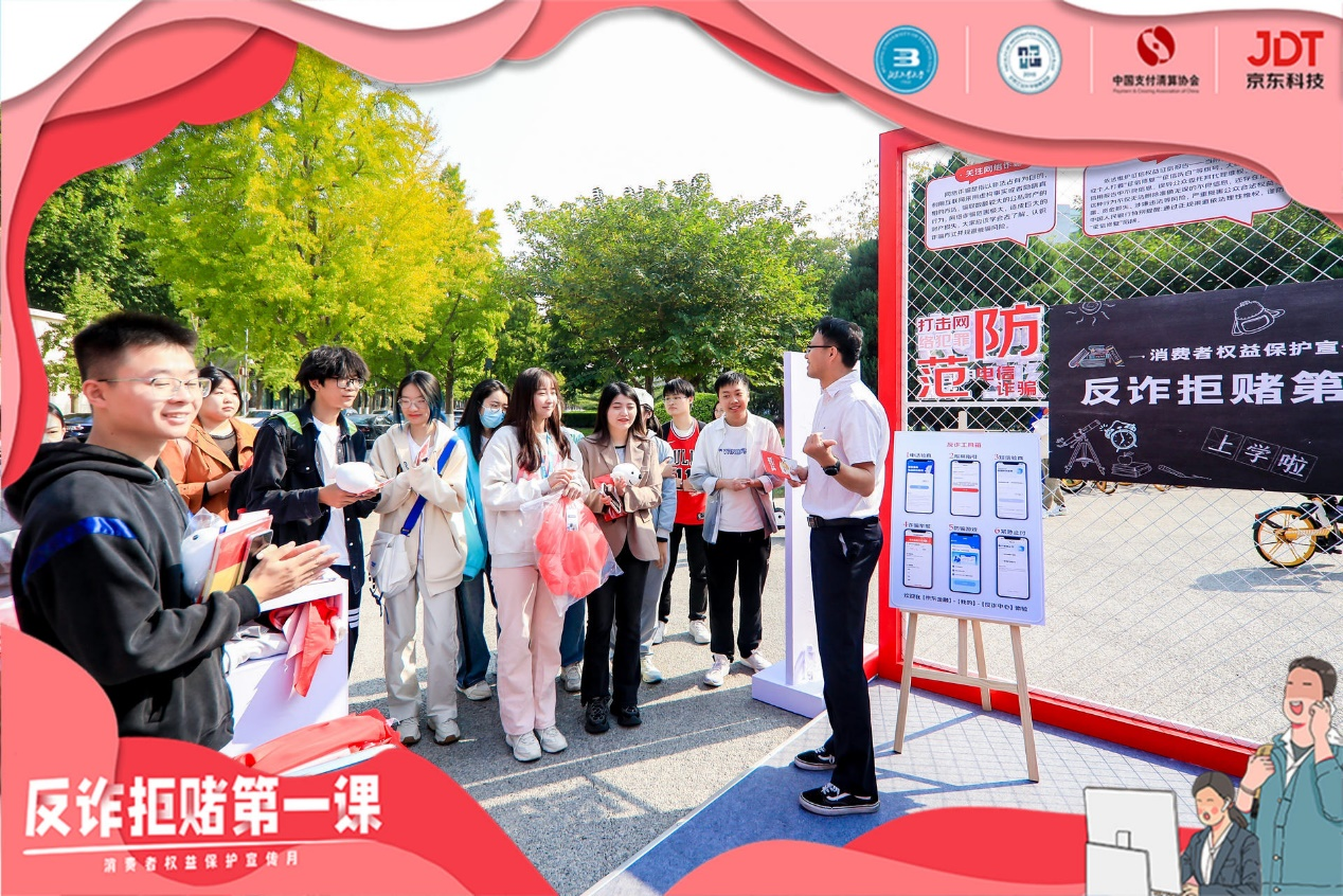 为进一步增强员工支付安全知识素养和反诈拒赌意识,筑牢防诈反诈“安全墙”,提高员工群体防骗“免疫力”。2023年10月11日,信息学部联合保卫处与中国支付清算协会、京东科技控股股份有限公司、网银在线(北京)科技有限公司、重庆京东盛际小额贷款有限公司,在校园中举行了“反诈拒赌第一课”公益宣传活动,yl23455永利官网保卫处副处长陶明法、yl23455永利官网信息学部党委副书记王丽君、中国支付清算协会研究部主任陆强华、京东科技和网银在线相关领导等出席活动。