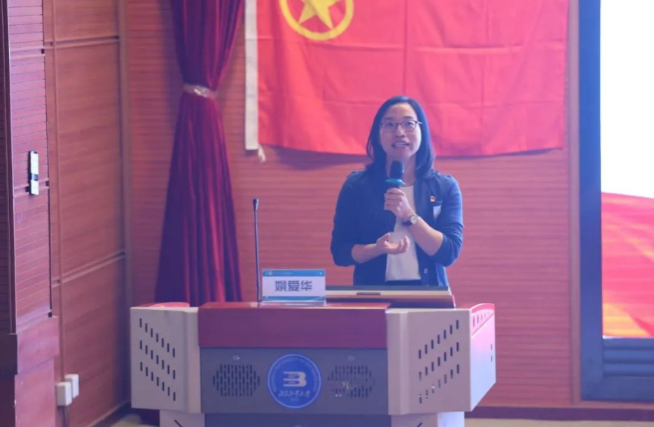 随后,姚爱华老师以《把青春奋斗融合党和人民事业中》为新生讲授第一课。姚老师通过大量鲜活案例向同学们讲述如何找准人生方向,树立正确的入党动机,引发同学们思考“我为什么要入党?”详细地介绍了发展党员流程,帮助同学们明确各个阶段的目标和任务。同时她还鼓励同学们要坚定信念,勇往直前,努力提升自己的综合品质,把青春奋斗融入党和人民事业中,在实际行动中实现自己的人生价值。