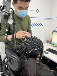 图7 课题组人员正在进行EEG-FNIRS多模态实验,图为被试者正在进行实验