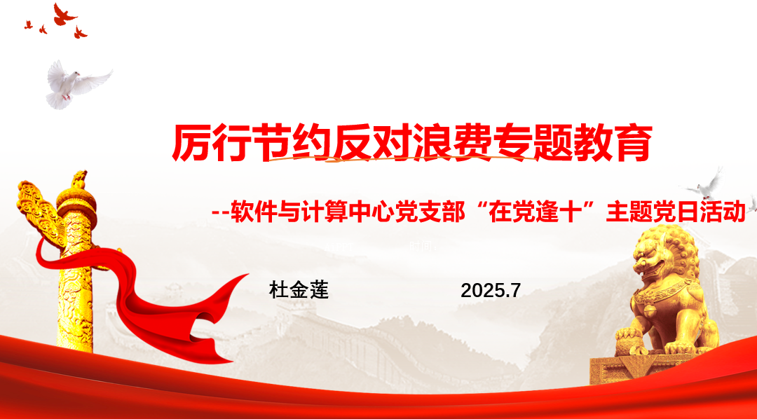 2025年7月8日,软件与计算中心教师党支部开展“在党逢十”主题党日活动,深度融合厉行节约反对浪费专题教育。活动旨在深入学习贯彻习近平总书记关于厉行节约、反对浪费的重要指示精神和《党政机关厉行节约反对浪费条例》,推动学查改工作落实,并庆祝支部党员“政治生日”。