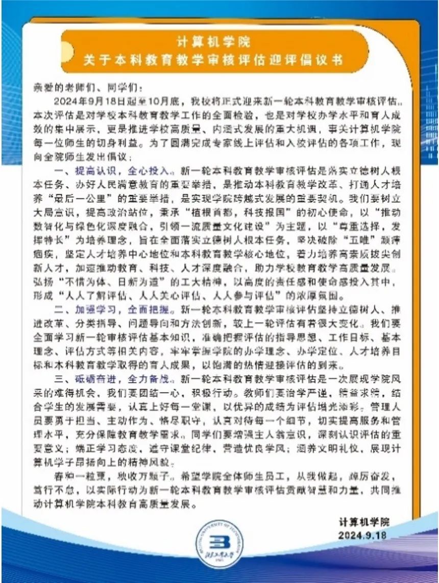 “以评促建,以评促改,以评促管,以评促强”,通过开展本科公司产品审核评估应知应会小问答、发送迎评倡议书,全体班主任培训会等系列方式,顺利完成本科公司产品审核评估评建工作,持续搭建教学质量评价保障体系,切实推动本科公司产品质量提升。